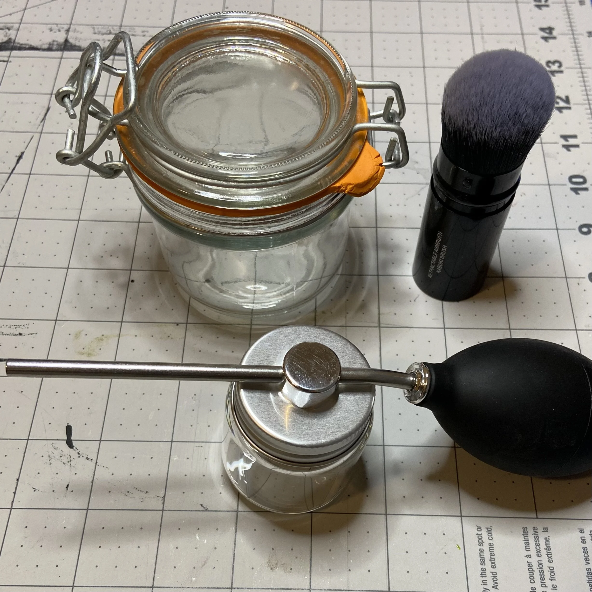 For my own use, I started with corn starch to which I added some Bay Rum essential oil, which is a scent that I love. I whisked it all together, and put it into the receptacle of a powder spray bottle. You can get many versions of such a spray bottle, but I like the fact that mine has a long metal tube. I don’t need to part my hair; I can just run the metal tube along my scalp and dispense as I go. Again, less is more. Don’t overdo the powder. For the record, I have dark hair, and I didn’t have any problem using a white powder. It vanished into my hair like it never existed, taking the oil with it, but leaving behind just a hint of bay rum. Lovely.