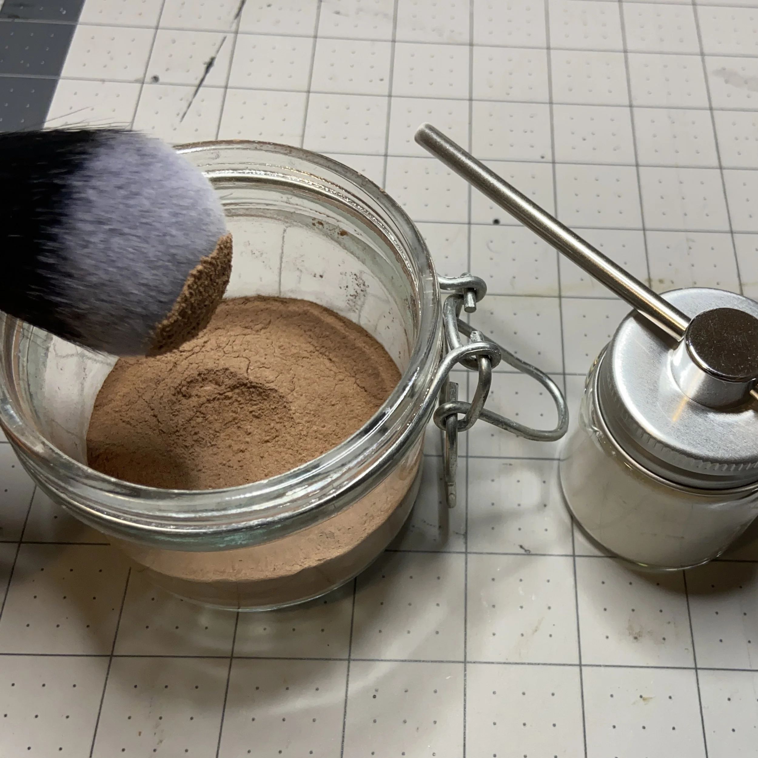 Now, you can of course make this a lot more complicated. For instance, you could add a coloring agent for darker hair, such as red clay powder or activated charcoal. Both those items would also aid in the absorption of oil. But if, like me, you didn’t have any of those ingredients lying about, you could add something like cocoa powder. I made a version (which I will gift to my favorite local sister-in-law) that was 50% arrowroot powder and 50% cocoa, whisked together and then poured into an airtight jar. This can be applied with a big makeup brush: just dip the tip into the powder, tap off ALL the excess, and then dab it into your scalp along a parting. Part the rest of your hair by sections and repeat. Do not go crazy with the powder…use a light touch. You can always add more if needed. Massage it in, leave it for five minutes, then brush it out. Works great.