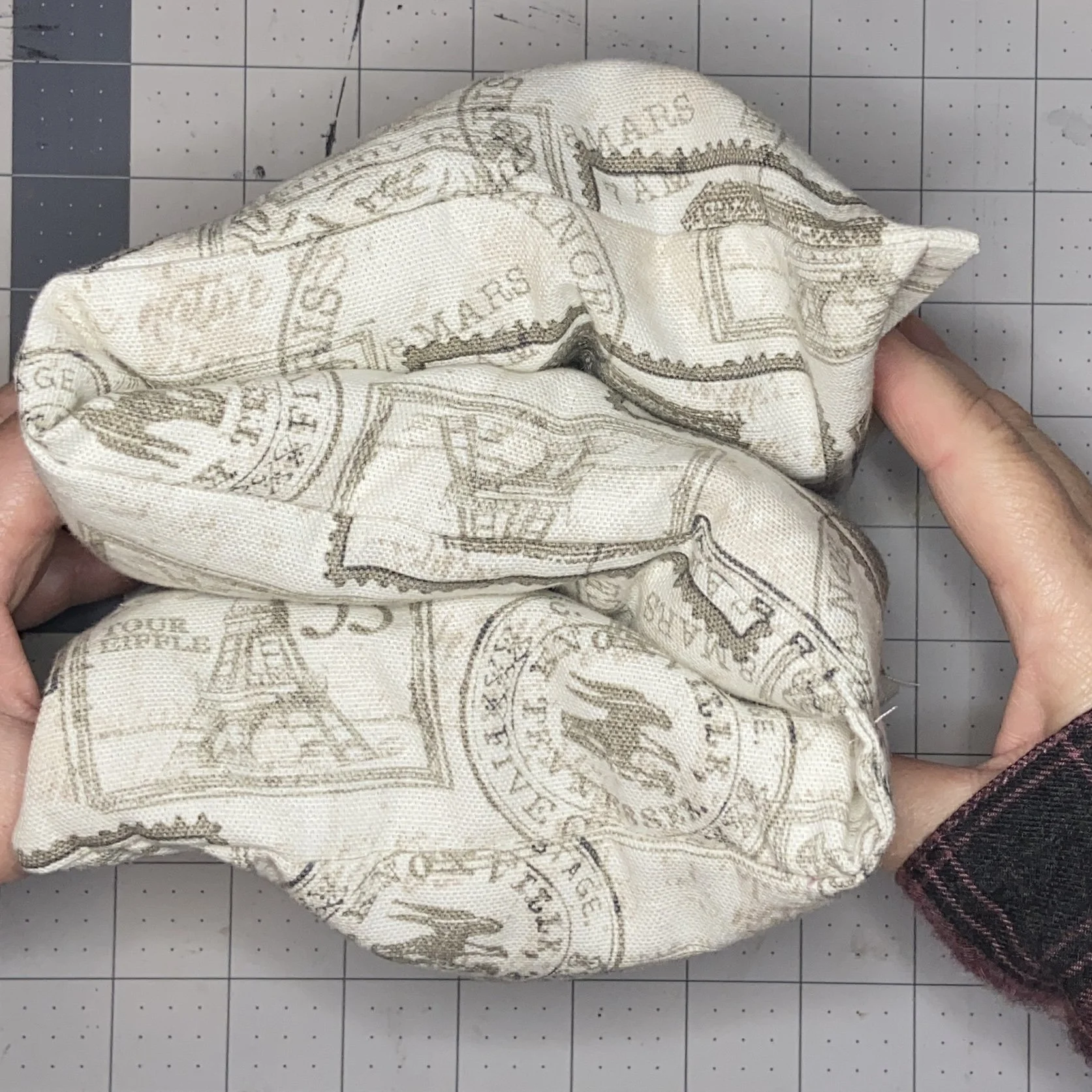 This really was quick and very easy. I spent most of the time figuring out how to make things work. The actual assembly was very fast indeed. And after two minutes in the microwave at full power, the neck roll is toasty warm and so comforting over the shoulders. It’s perfect! I’ve used it every day since I made it, and my mother has already requested one for herself. Coming right up, mom!