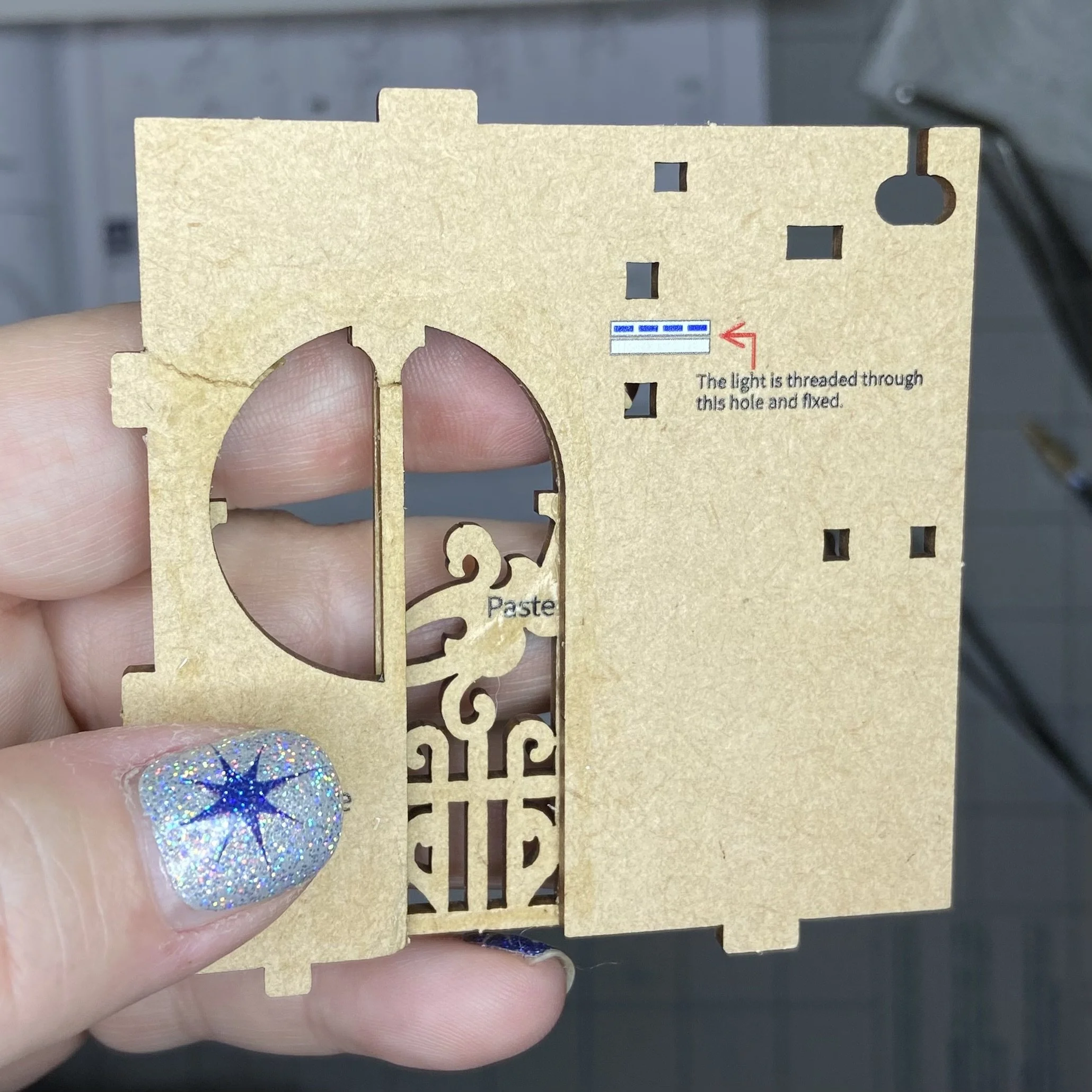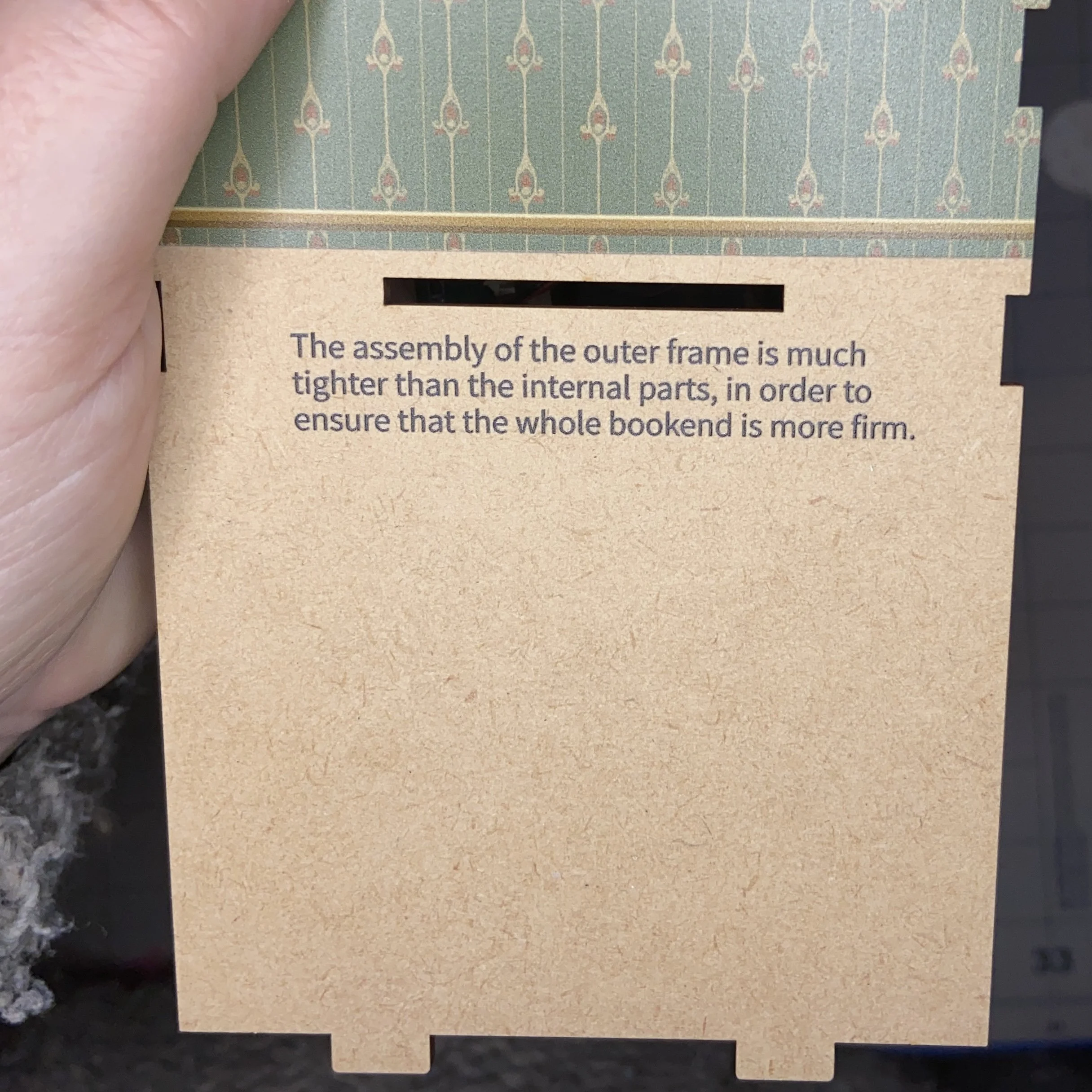 You’d think after all the book nooks I’ve assembled that I’d remember that a lot of these pieces are delicate and won’t stand up to a lot of pressure during assembly. But at least once every project, I break something. If I’m lucky, it can be glued back together. And if I’m really lucky, another piece is glued over the top of the break, both providing additional support and hiding the break.