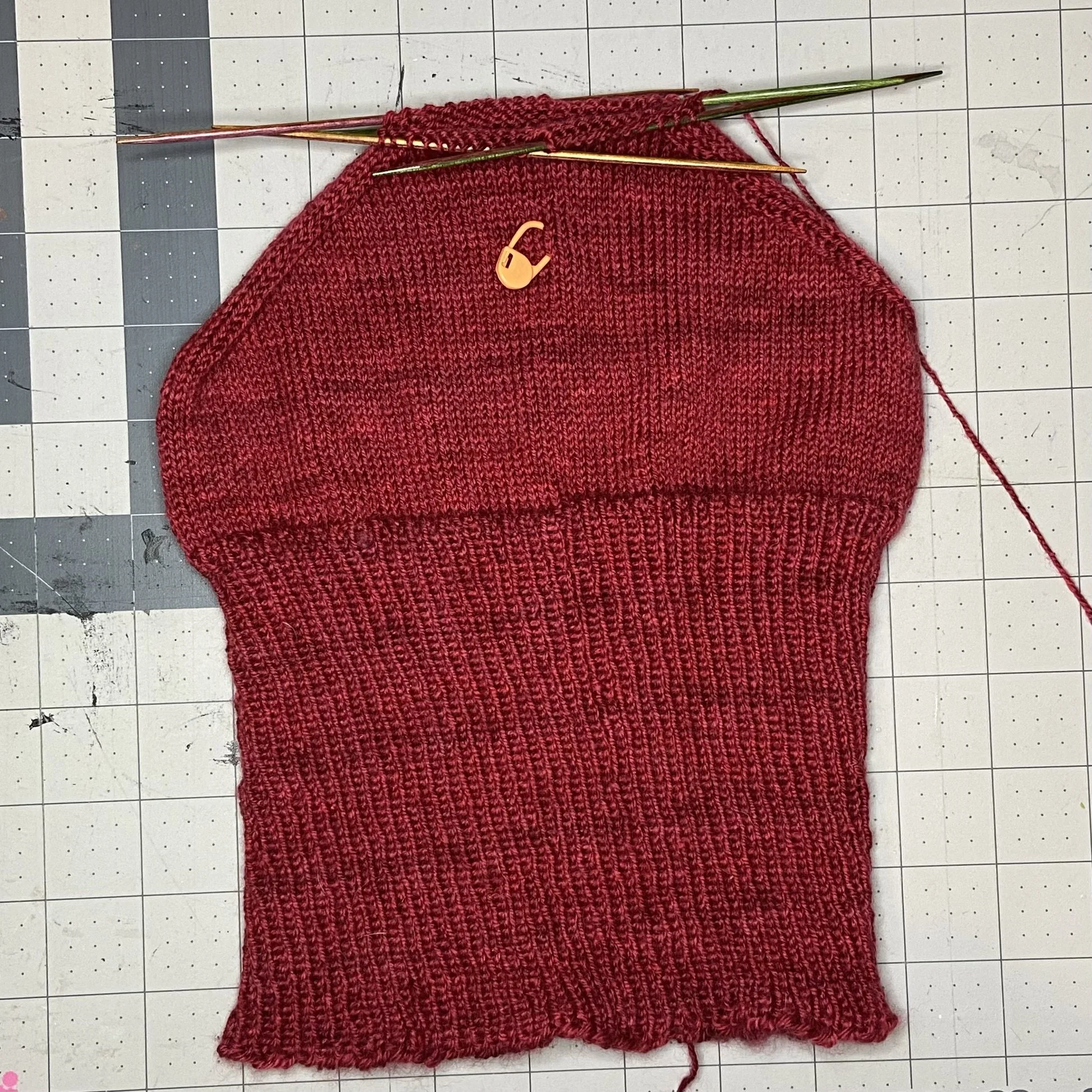 The pattern I am using is called Melt the ICE and is available on Ravelry, which gives a brief description of the designer’s purpose and where the proceeds of the pattern sales will be directed. I did opt to make this hat in red for my own reasons, and was able to scrounge a skein of Fiber Optic’s Kashmir yarn in Bordello Red out of the stash. It appears that that color way is no longer available, but this looks like an excellent substitute. Stash knitting…always a personal triumph!