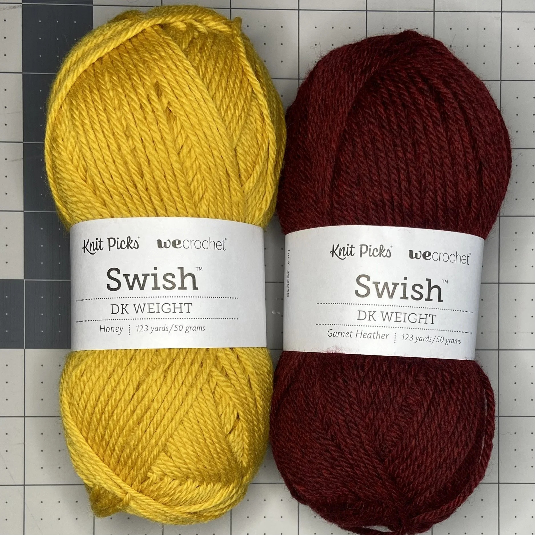 The pattern calls for fingering weight yarn, which is what I used for my first two projects. This time, I wanted something a little bigger that I could use as a proper shawl for really keeping the shoulders warm. So I decided to use KnitPicks’ Swish DK yarn (their Superwash yarn), and bought three skeins each of Garnet Heather and Honey. Side note: KnitPicks uses a lot of common colors across many of their different fibers and weights of yarn, Garnet Heather being one of them. I love it so much that I’ve used it (the color) in more projects than I can count. It’s rich, deep, beautiful, and looks good on everybody. Ahem. Onward.